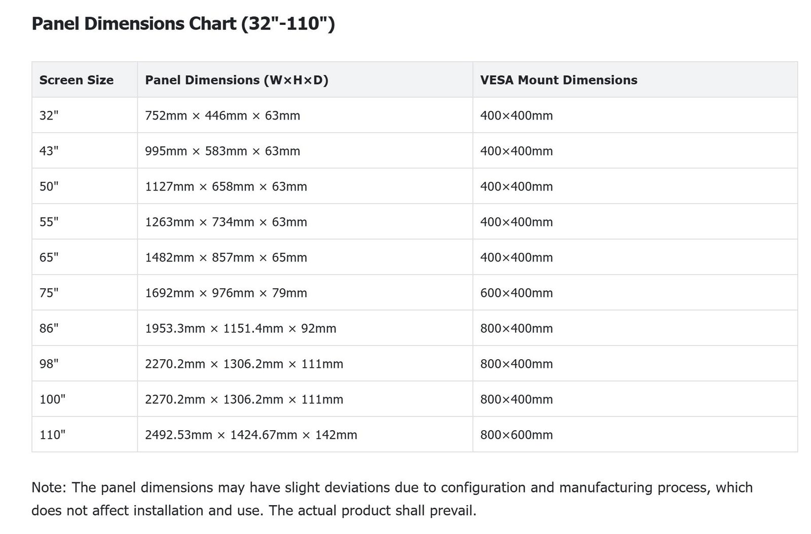 Full Size Range: 32″, 43″, 55″, 65″, 75″, 86″, 98″, suitable for large-scale scenarios such as shopping malls, hotel lobbies, conference centers, hospitals and stadiums .