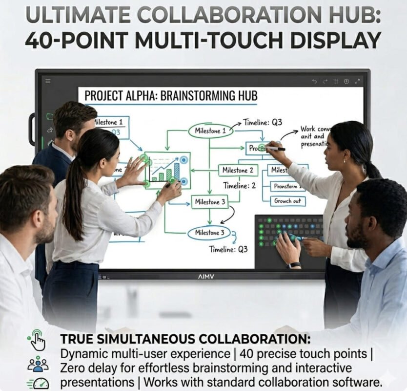 40-Point Ultra-Precision Touch: Smooth multi-user interaction, low latency, palm rejection, and natural pen-to-paper feel.