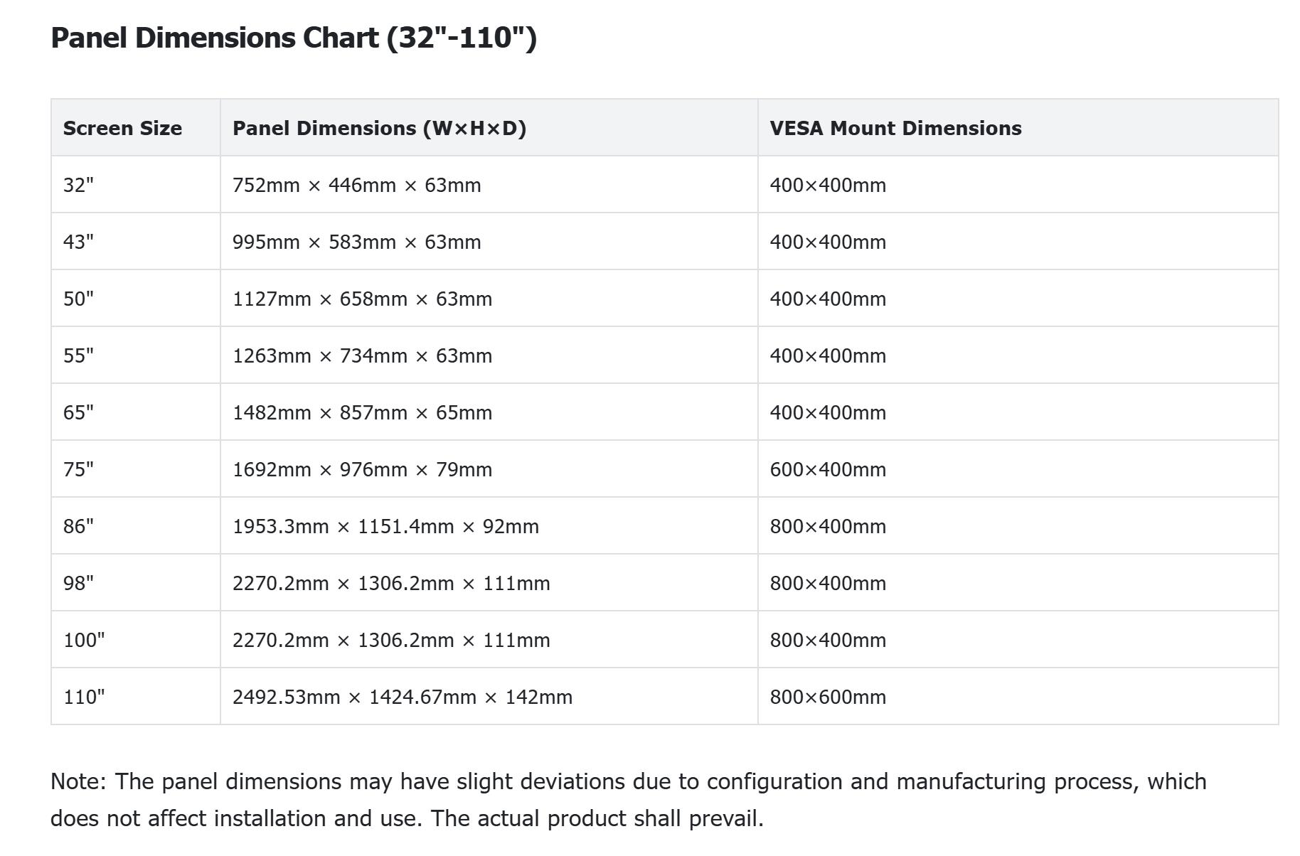 Full Size Range: 32″, 43″, 55″, 65″, 75″, 86″, 98″, suitable for large-scale scenarios such as shopping malls, hotel lobbies, conference centers, hospitals and stadiums .