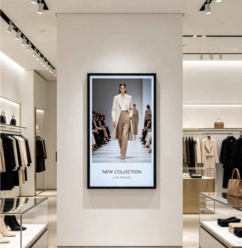 Adjustable Brightness & Anti-Glare optional: 500-1000 nits brightness (optional 5000 nits for bright indoor areas), paired with 4mm anti-glare tempered glass, ensuring clear visibility in shopping malls, lobbies, and near-window spaces