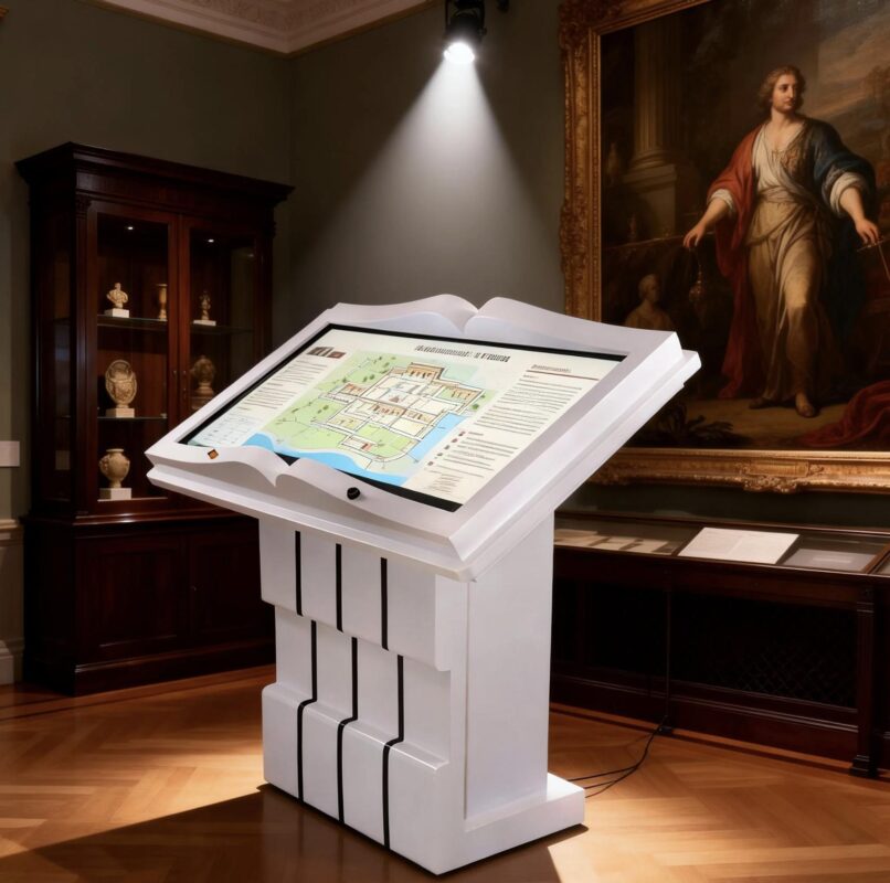 Engage your audience with our 32″ to 65″ Virtual Book Reading Kiosk. Featuring contactless motion sensing, optional PCAP touch, and built-in flip book software. Ideal for museums, libraries, and showrooms. Request a quote today!