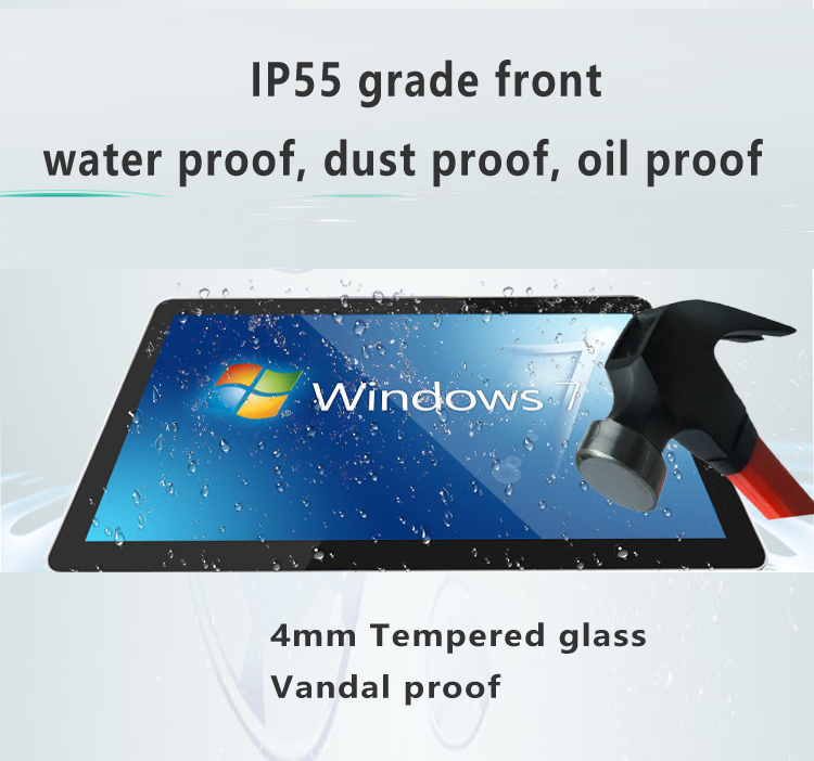 Adopts advanced projected capacitive (PCAP) touch with smooth, accurate multi-touch control, fast response and strong anti-interference performance. It supports stable 24/7 continuous operation, with high light transmittance, scratch-resistant glass surface and easy cleaning, fully meeting commercial and industrial durability standards.